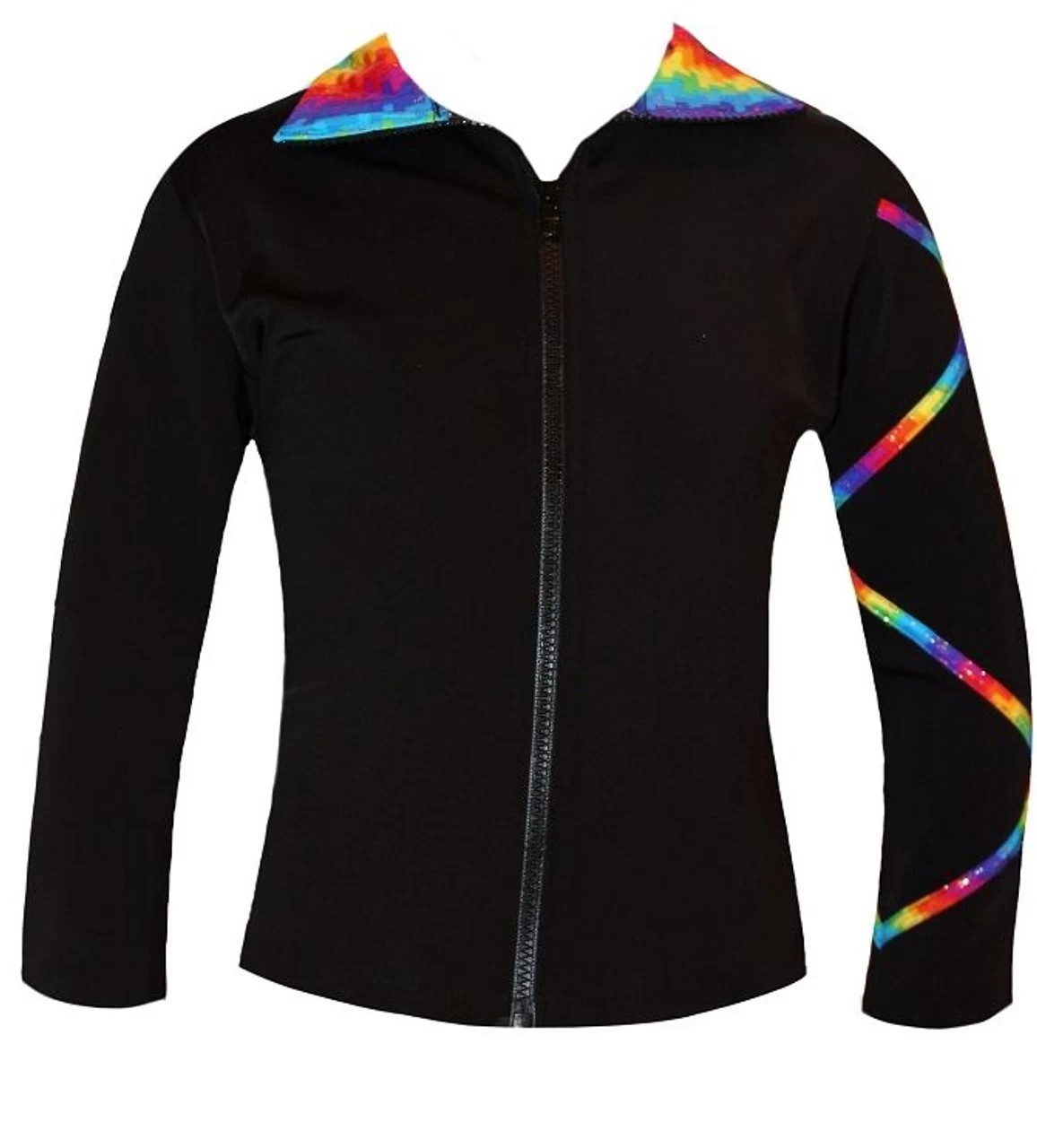 Spectrum Gold Criss Cross ice skating jacket. High performance brushed poly spandex fabric offering soft to touch inner surface and quick drying spandex outer side.