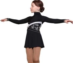 IceDress Figure Skating Dress – Thermal – Delight (Black With Silver And Rhineston Applique)
