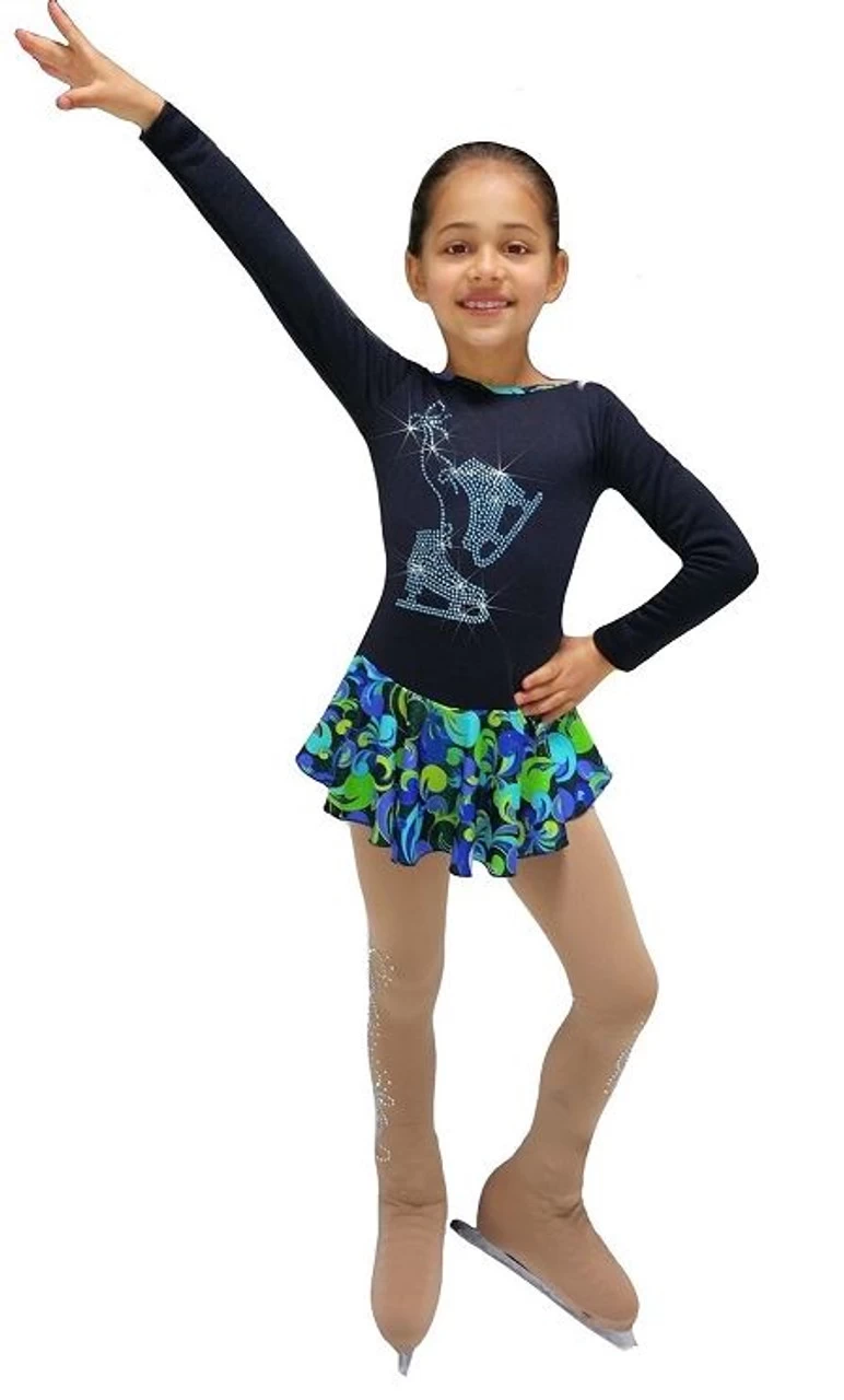 Warm and soft polar fleece ice skating dress offering comfort and fun rhinestone design. Featuring Aqua Pair of Skates rhinestones design that brings vibrant shine and create perfect match with twirling skirt. Wear it with ice skating pants or tights and keep your skate safe in skating boot covers.