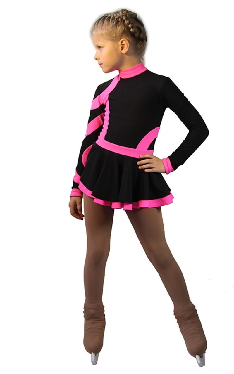 Training dress “Cross-Roll” is made of Italian Vuelta techno- fabric We are pleased to introduce one of the most outstanding novelties of the dresses from the range collection 2014-2015. Training dress “Cross-Roll” looks so bright and attractive that it could easily be mistaken for a dress for performances. The contrasting color combination of bright sporty design and the original design decision were the basic items while the model were being created by our designers. Asymmetrical lines of a complex configuration, high waistline, double layered skirt, flared and fit – all this attracts the eye. In this dress your child will be guaranteed to stand out on the ice and feel like a leader.