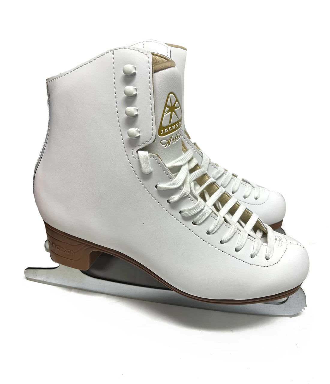 Color: White Material: Leather upper Condition: Pre-owned Brand: Jackson Welcome! For sale I have a pre-owned pair of Jackson Artiste JS1690 White Width C Size 9. Leather upper polyurethane coated for easy care and Softer topline for increased comfort Microfiber lining with memory foam ankle padding Flex notch for added flexibility and Foam backed leather/mesh comfort tongue Stylized PVC outsole for easy care