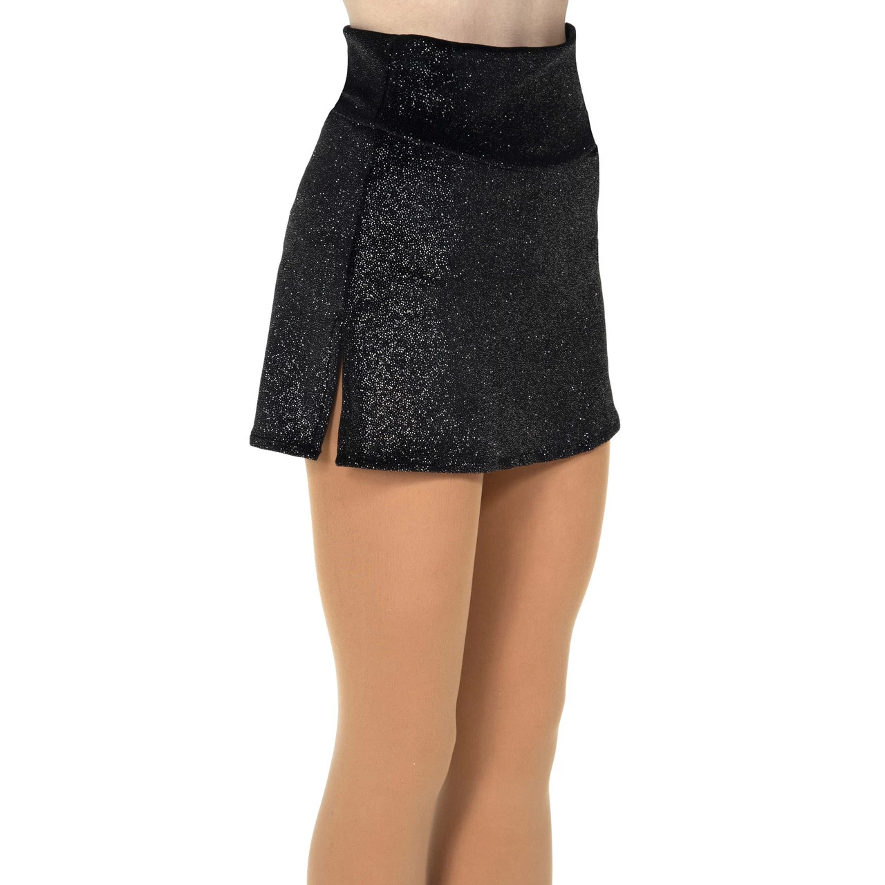 Metallic shimmer velvet skirt with side slits, high waist, and matching solid panties
