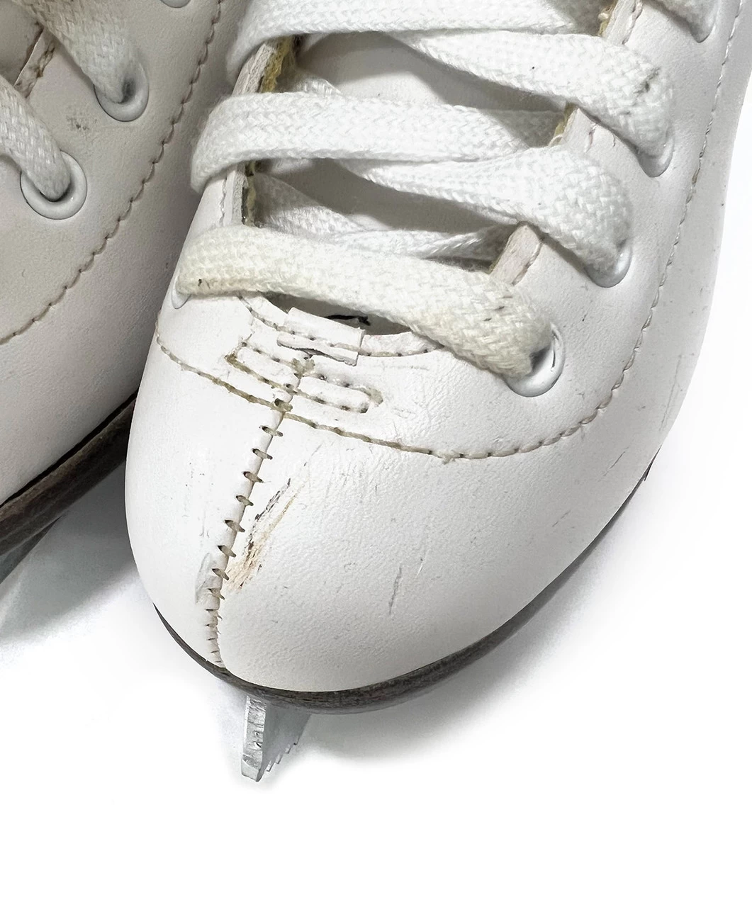 THE PRODUCT HAS COSMETIC SCRATCHES. TOE STOPS AND WHEELS ARE USED. PLEASE REFER TO ADDITIONAL PICTURES. SIZE 13J ONLY.