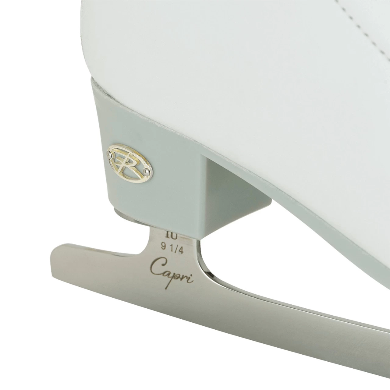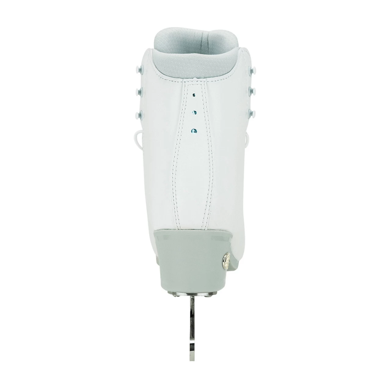 This skate set also offers a modern ergonomic toe fit for out-of-the-box comfort. The plush hand rolled collar provides relief to the Achilles tendon and a flex notch design facilitates proper knee and ankle bend. Beyond the technical features, each skate is adorned with faux crystals in the backstay and a decorative gem lace bar for added sparkle on the ice.